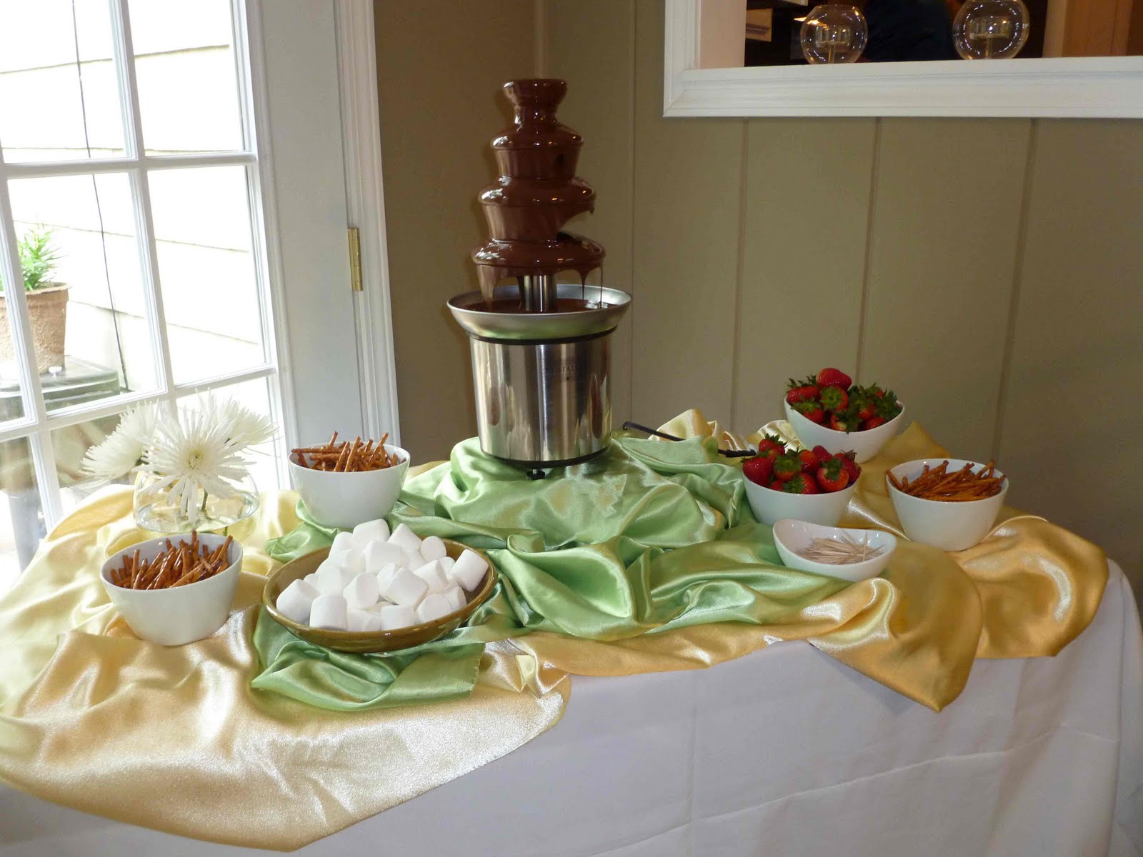 Chocolate fountain with goodies for dipping.